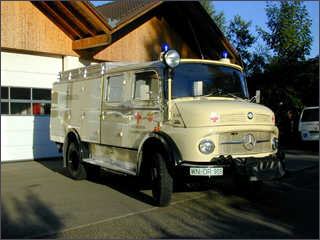 Die Spezialfahrzeuge wurden unseren Anforderungen entsprechend ausgerüstet und werden für ganz gezielte Zwecke benötigt. In diesem Fahrzeug befindet sich die nötige Ausstattung, um im Notfall einen mobilen Verbandsplatz aufzubauen. Im Fahrzeug sind Zelte, Feldbetten, Decken, mobile Stromversorgung und vieles mehr untergebracht. |